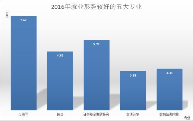 CIER指数大于1时就业市场趋于缓和,就业市场景气程度高,就业信心较高。2016年互联网行业成为当之无愧的就业形势最好的行业!