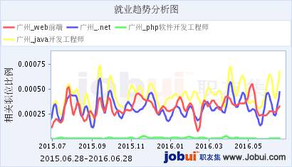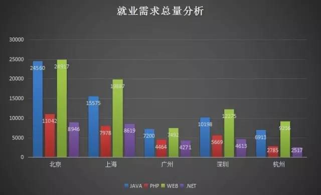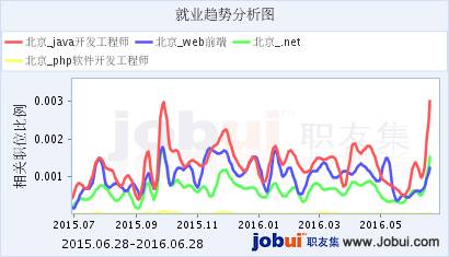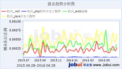 以北京上海广州深圳以及新一线城市杭州这5个地区为例,分析近几年来java,php,web前端以及.net工程师的就业趋势。