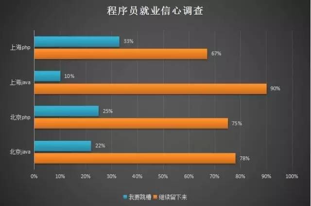 在被问及对你目前的工作是否有信心是否愿意继续干下去时,大部分的程序员给了正面的回答。