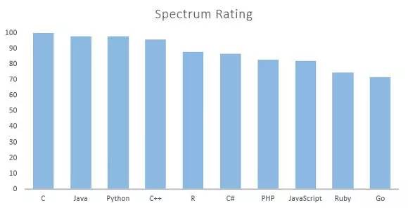 具体来讲,IEEE给出的语言人气排名共参考12项指标。根据其排名,C语言在两年位居第二后再度升至榜首,其后分别为Java与Python。C#跌出前五,R则取代其地位。Go语言首次进入前十。