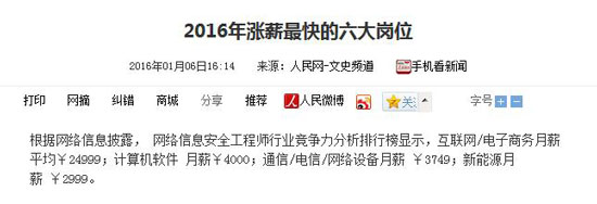 近期人民网一篇“2016年涨薪最快的六大岗位”被大家转疯了,榜单中显示,2016年薪资涨幅最快的岗位依次是: