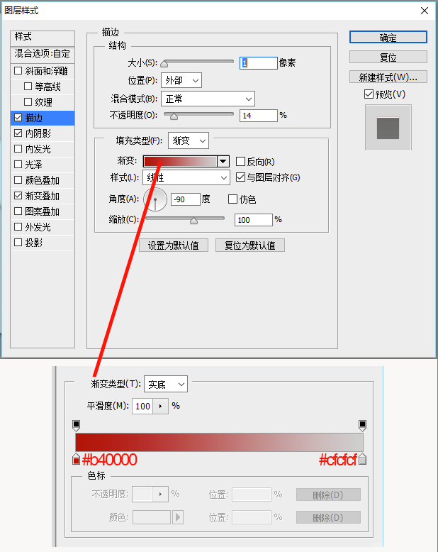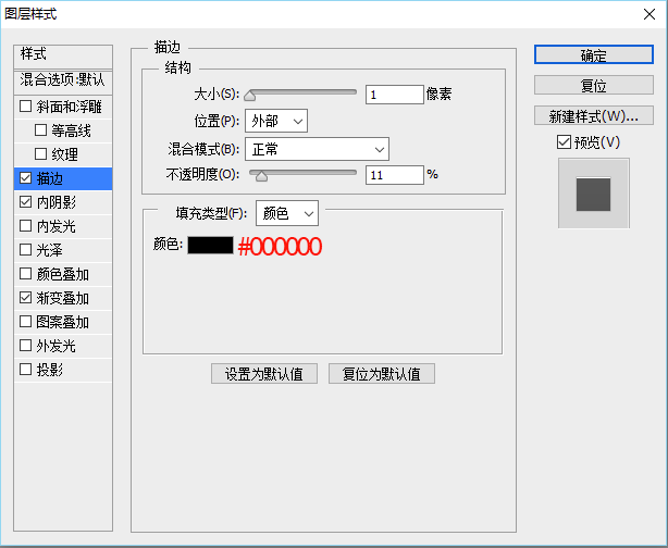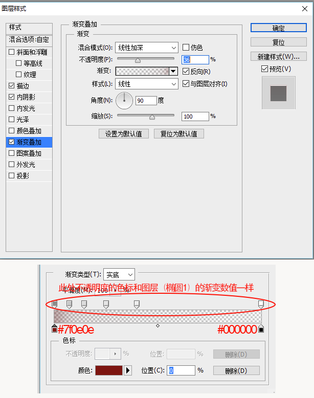 3.给图层(椭圆1)添加图层样式,分别是描边、内阴影、渐变叠加。