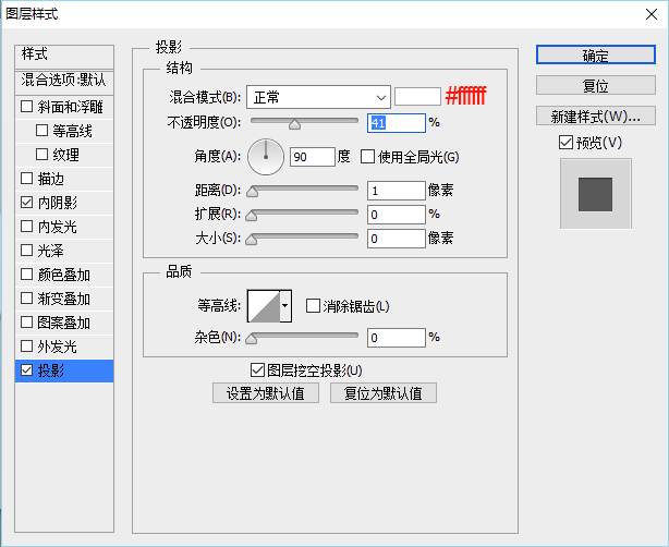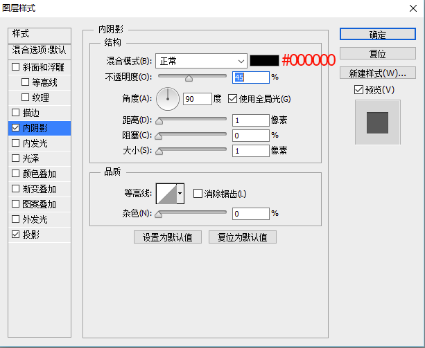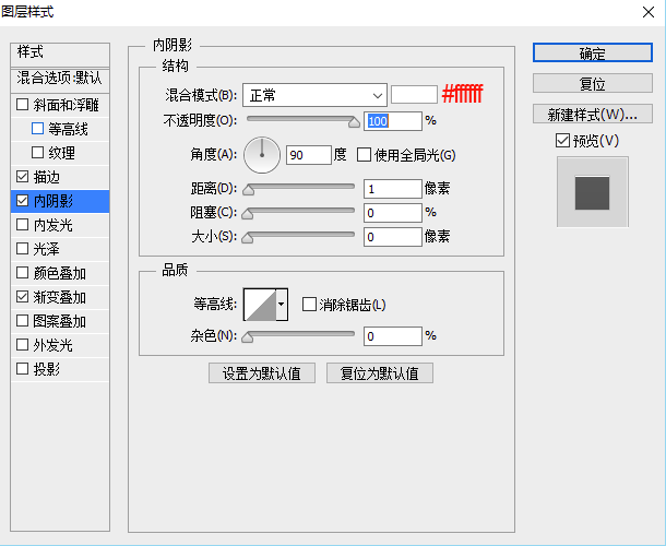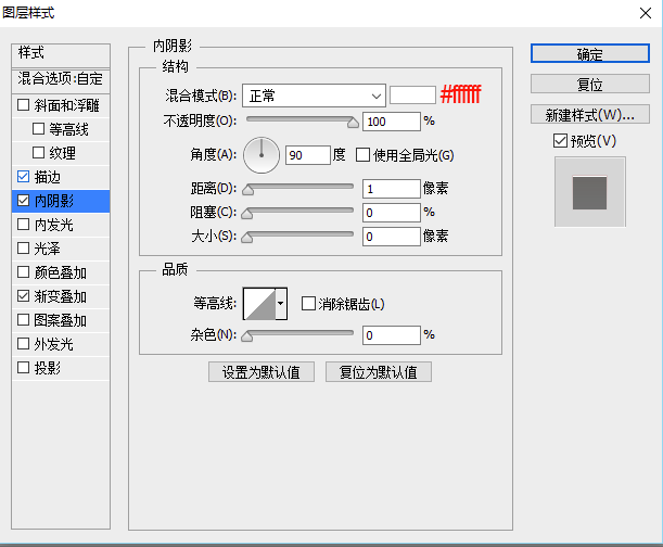 8.给关机图标添加图层样式,分别是内阴影、投影。