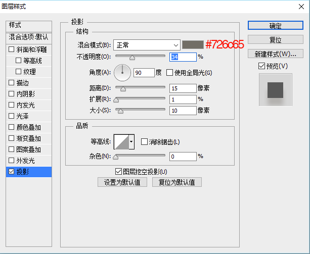 9.最后再复制图层(椭圆2),命名为:阴影,放在图层(椭圆2)下面,填充颜色:#726c65,羽化一下。给图层添加图层样式,投影。