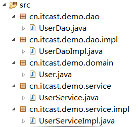 <bean id=”userServiceId” class=”cn.itcast.demo.service.impl.UserServiceImpl”>