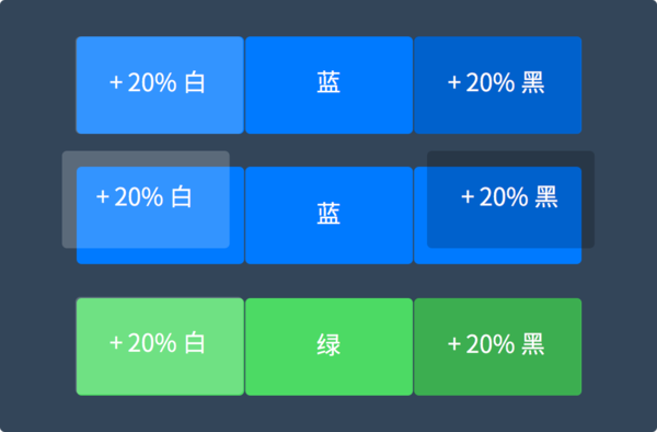 在上面的例子中,通过调整黑色或白色层的透明度,可以得到不同的单色,他们互相之间都能很好地调和。