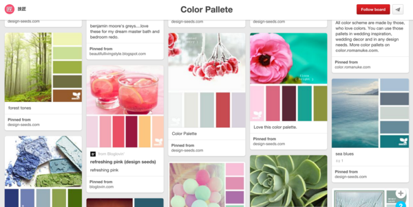 另一个,我最常去的地方是Pintrest,上面可以看到很多设计师收集的色板,下面是我Pintrest上的色板Board。