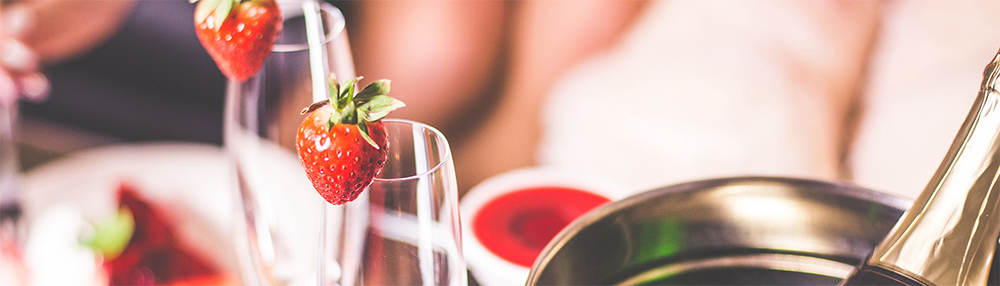 下面是同一张照片的两种不同的剪裁,凸显出了不同的焦点,第一张的焦点是玫瑰花,第二张的焦点就转移成为了酒杯上的草莓,第一张稍浓艳,第二张稍清新。
