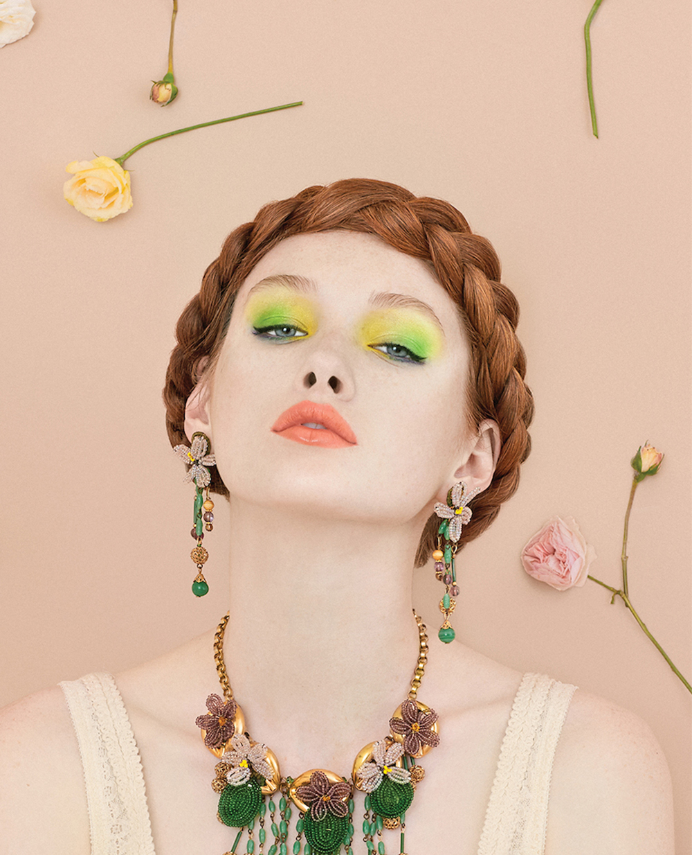 就算是服饰展示,也可以运用模特美感,选用恰当的布景设计。以体现产品本身的个性特点。这需要摄影作品里的一种独道的叙事能力。下图这一张摄影作品里流露出复古的华丽风尚。