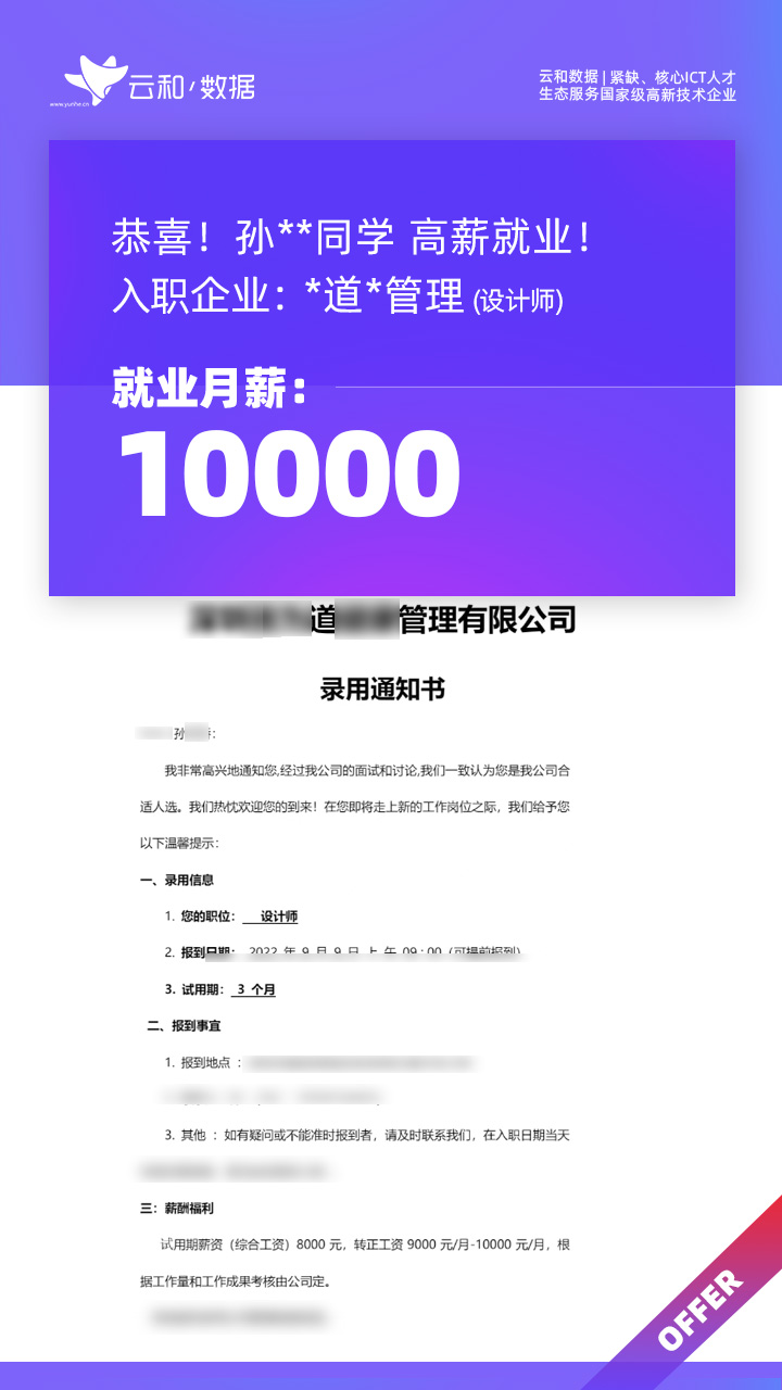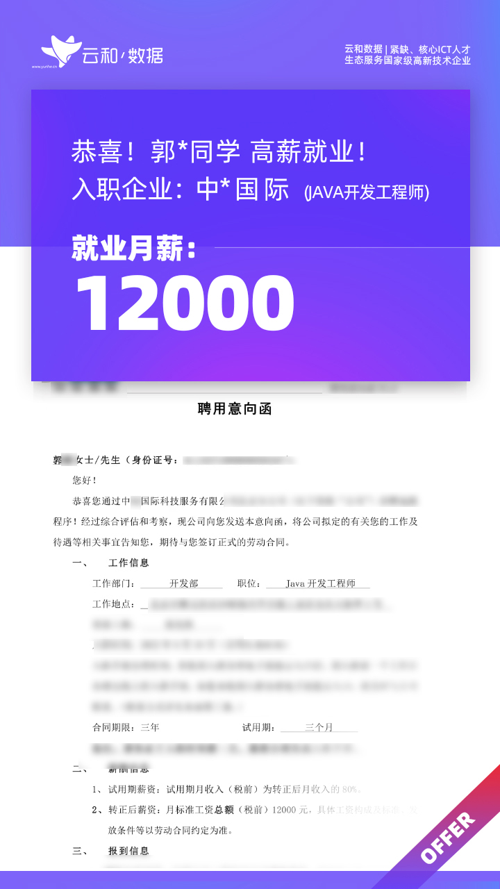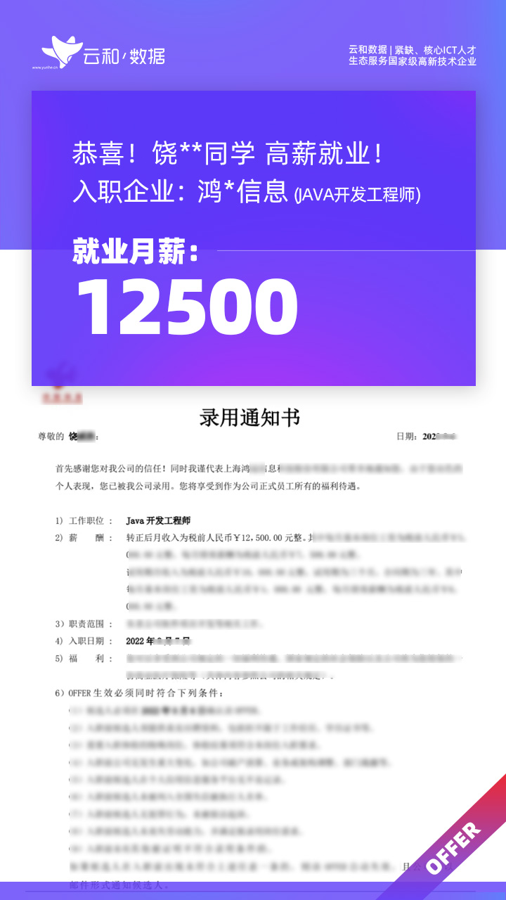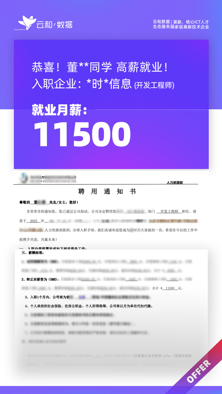 云和数据ICT职业教育发挥公司产业化优势与技术积淀,整合国内外优秀师资,累计自主研发140余项教辅、教材,115项实践教学实训平台,采用六位一体项目制教学模式,年培养高端ICT技术人才超10000人,其中线下ICT职业教育5500余人,累计为企业输送高端泛ICT技术人才超8万人,60%来自于口碑推荐。更大规模、更多人选择;更好的ICT学习、更好的就业。云和数据人才培养技术方向涵盖大数据、云计算、人工智能虚拟现实JAVA软件工程UI用户体验设计Web前端开发网络安全八大方向,云和数据以八大精品课程为基础,八大就业基地为依托,一次就业率99.02%,61.9%就业薪资超1W,以大数据为首的精品专业平均薪资13.25K。